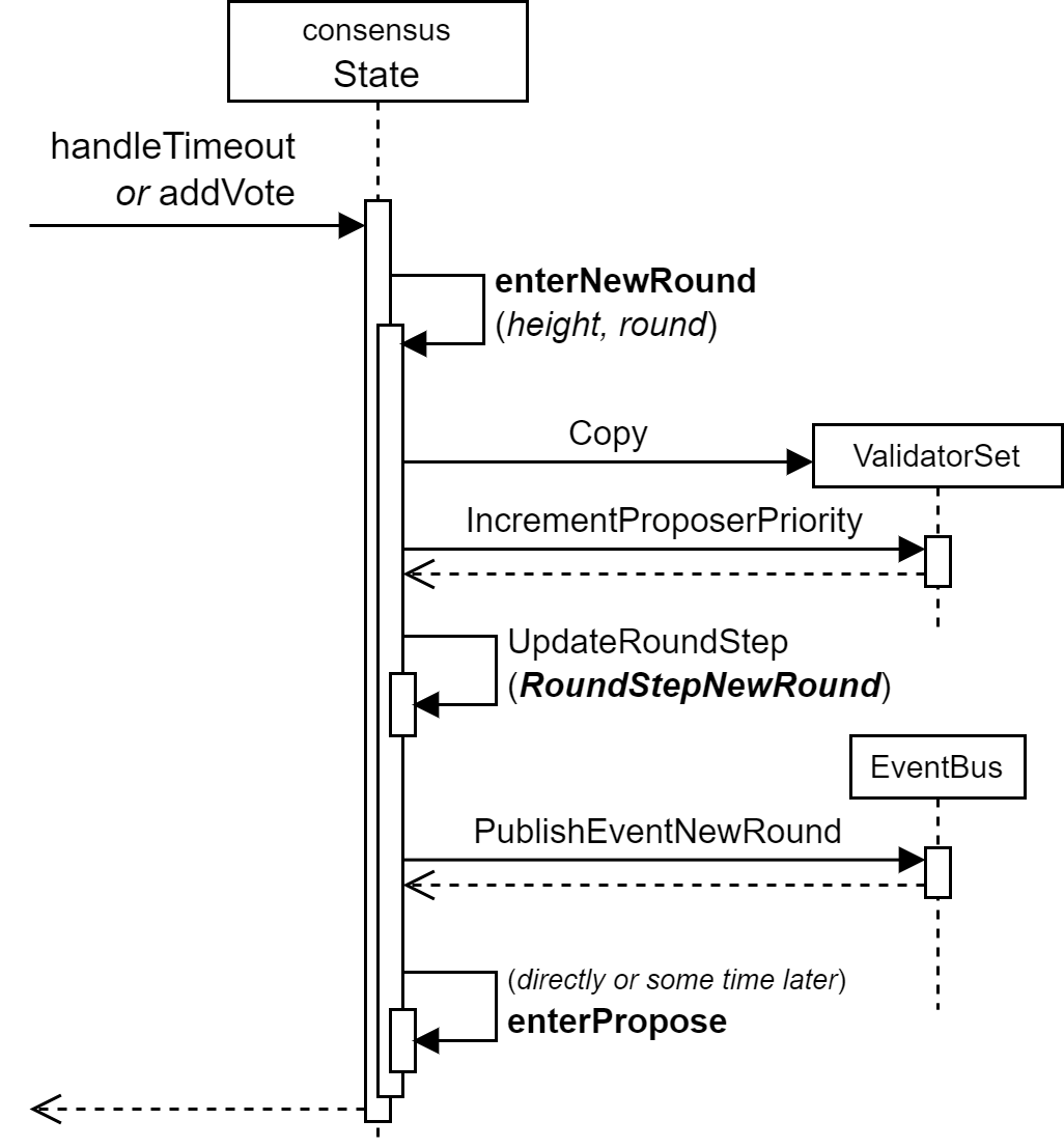 ときに呼び出され、NewRound ステップへ移行したあとすぐに Propose ステップに移行する。