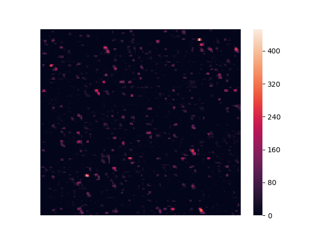 # sns.heatmap(f, vmin=0, vmax=max, xticklabels=False, yticklabels=False, square=True, cbar=False)